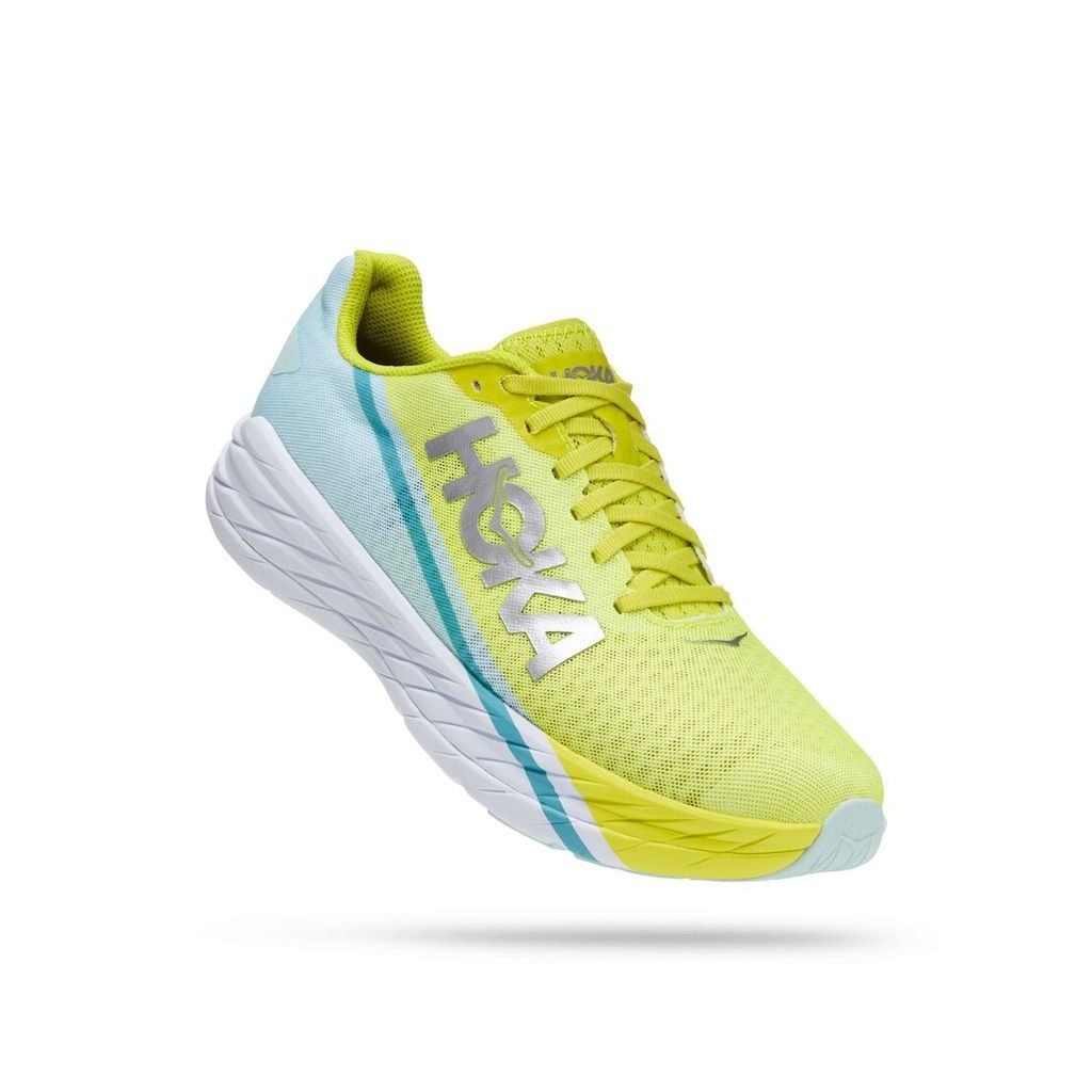The latest mark of HOKA innovation in lightweight, cushioned footwear, Rocket X is an unprecedented performance shoe. A groundbreaking midsole combines responsive agility with soft, forgiving landing, and contains a carbon fiber plate designed for maximal stride efficiency. Launch off the line with Rocket X.